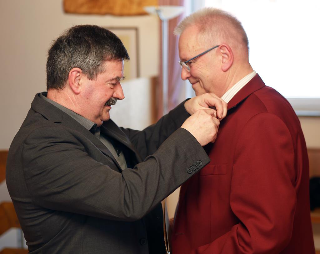 Ehre, wem Ehre gebührt: Helmut Grünbauer (l.), stellvertretender Vorsitzender des VWE-Bezirksverbandes Oberpfalz und Kreisvorsitzender, zeichnete den ausgeschiedenen Vorsitzenden Josef Barth (r.) mit dem VWE-Ehrenzeichen in Gold aus.