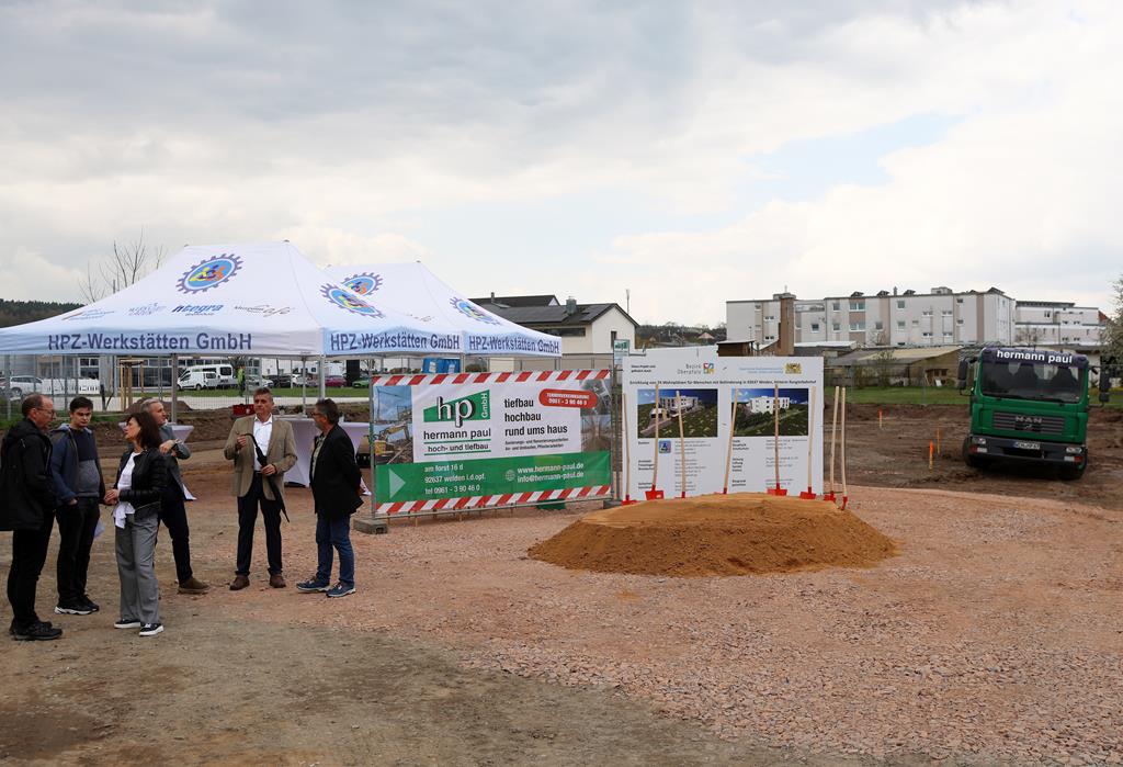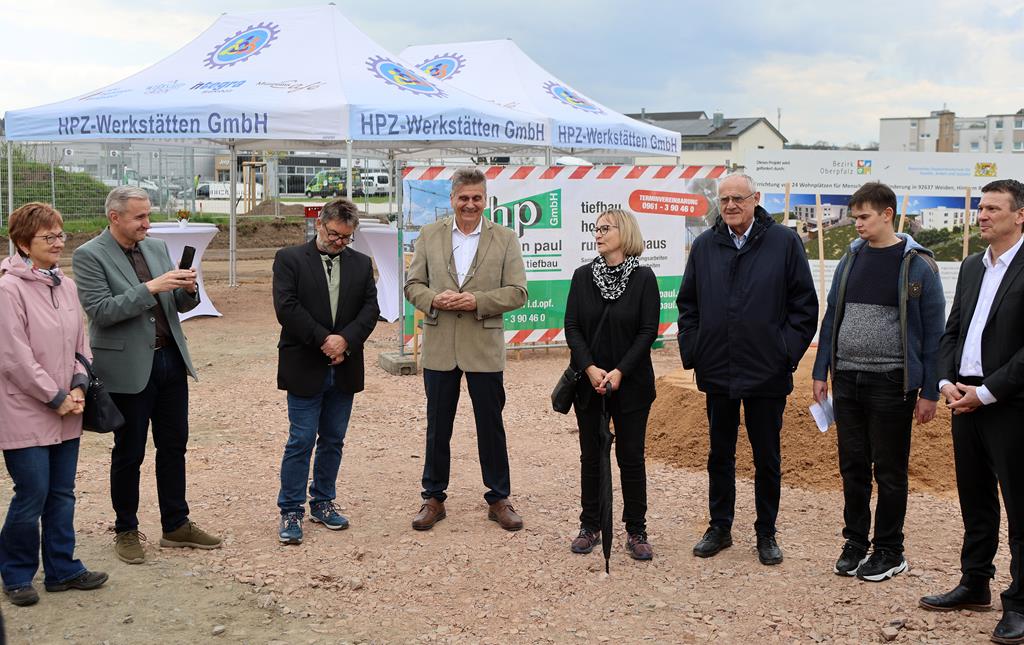 Zudem wohnten die stellvertretende HPZ-Vorstandsvorsitzende Brigitte Krause, Vertreterinnen und Vertreter der oberpfälzer Bezirksverwaltung, der Heimaufsicht, der bauausführenden Firma Paul, des Architekturbüros Naumann, zahlreiche HPZ-Mitarbeitende sowie Johannes Brandl, der Vorsitzende der Bewohnervertretung, dem Spatenstich bei. Diese Vielzahl der Ehrengäste unterstrich die Wichtigkeit des Projektes, für das sich die Gesamtkosten auf rund zehn Millionen Euro belaufen werden. „Dass wir das umsetzen können, verdanken wir auch der Unterstützung unserer Fördergeber“, so Stadler. Der Freistaat Bayern fördere das Vorhaben mit knapp 4,4 Millionen Euro und der Bezirk Oberpfalz mit rund 750.000 Euro.