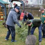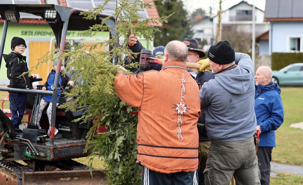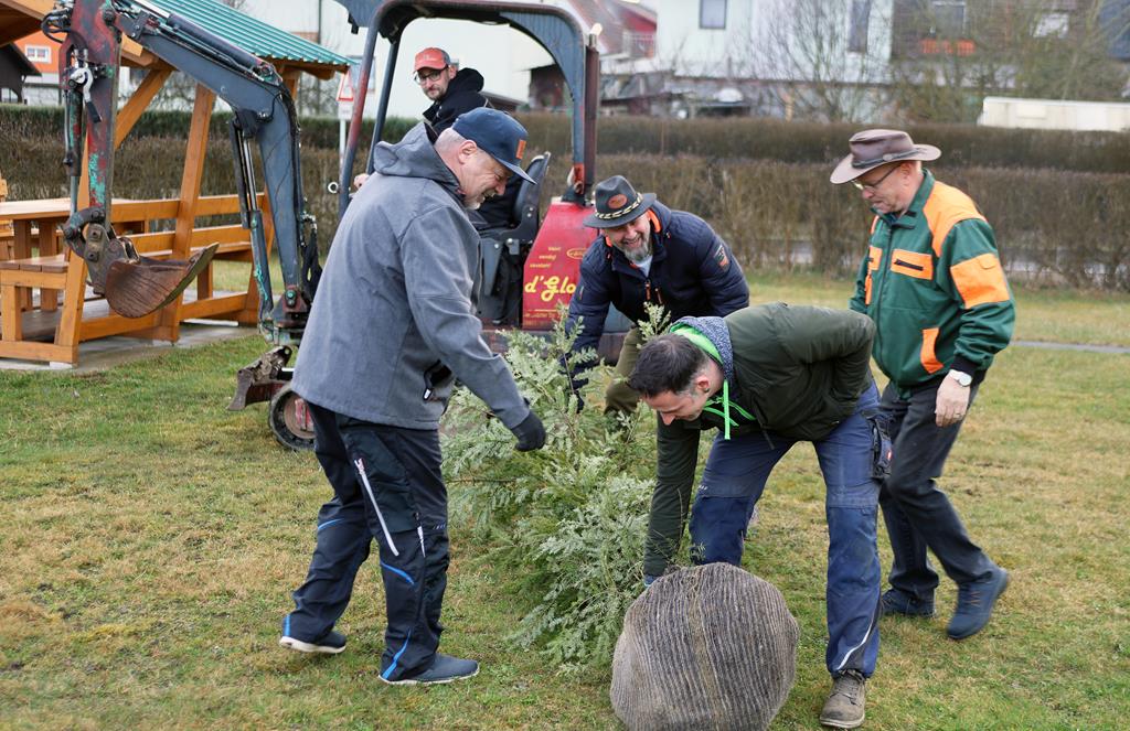 Unterstützung: SG-Ausschussmitglied Jens Schmidt (2. v. r.) spendete als Geschäftsführer der „Flosser Logistik GmbH“ dem Verein für die Anschaffung des Baumes 250 Euro.
